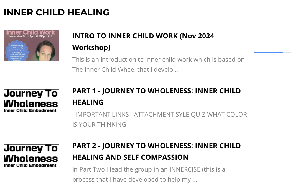 The Evolving Empath Membership provides access to a range of resources, including but not limited to: